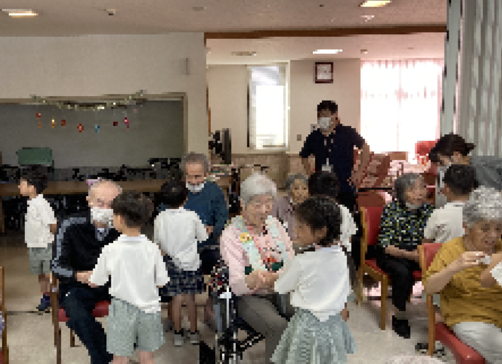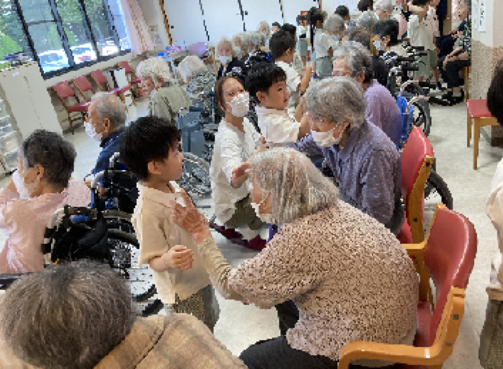 入所者様からは「かわいいわぁ」「元気でええわ」といった声が聞かれ、目を細めて喜ばれていました。中には、お孫さんやひ孫さんを思い出されたのか涙する方もみられました。