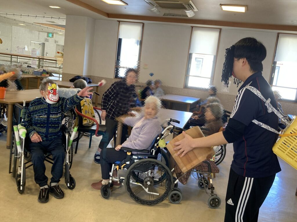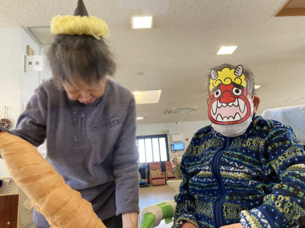 2階でも、鬼のお面を付けて豆まきをしたりと、皆さん力いっぱい楽しんでいただけました!