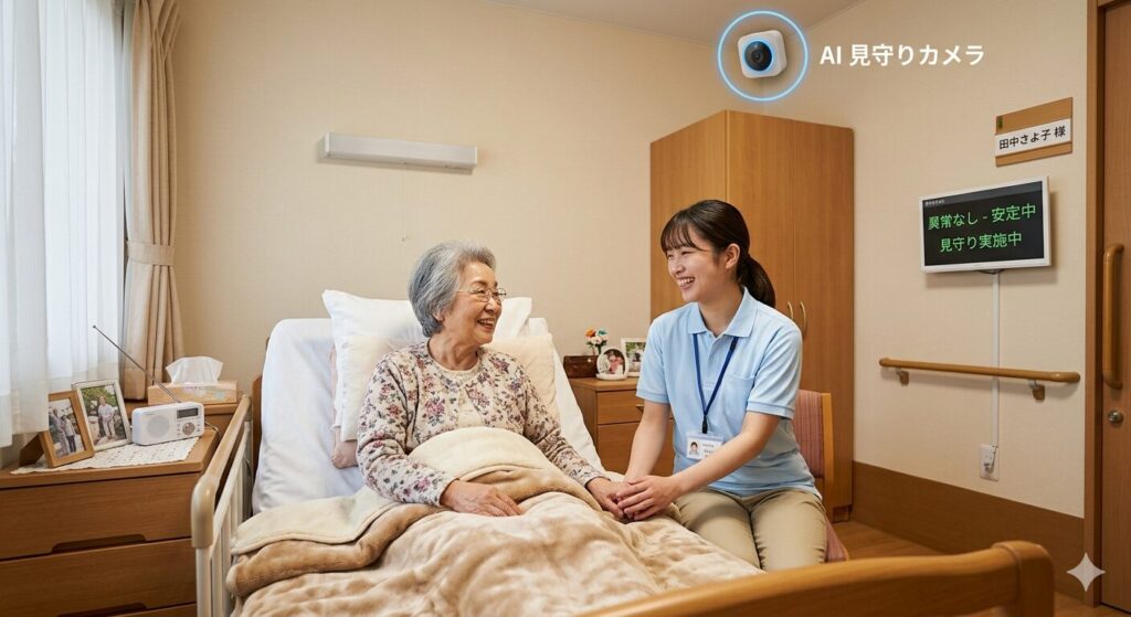 見守りの効率化によって生まれた時間を、入居者様との「対話」や「ぬくもりのあるケア」へと還元していく。これからも、最先端の技術と人の優しさが共存する未来の介護を目指して、職員一同邁進してまいります。